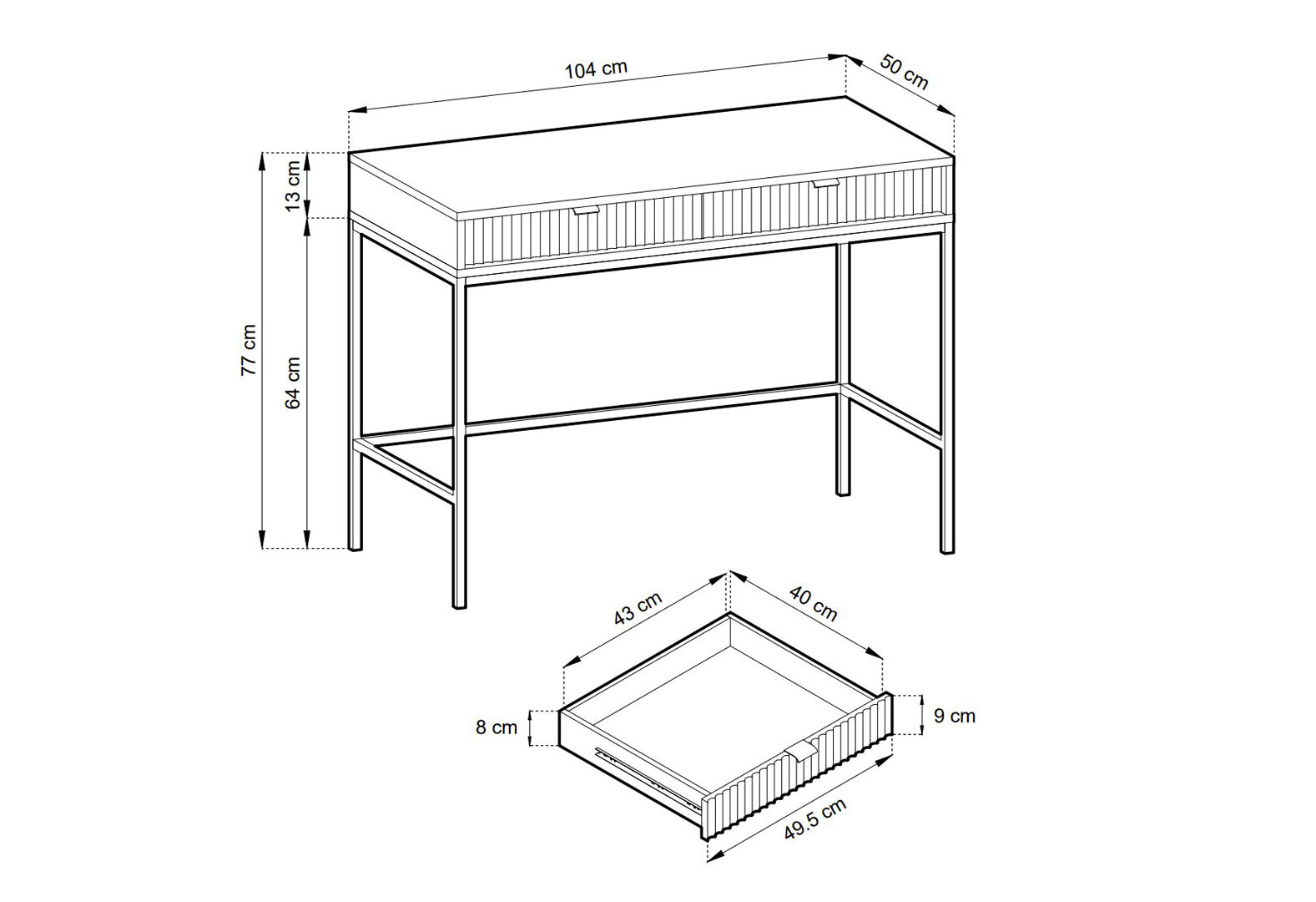 Стіл туалетний Perfect Home Нова / Nova з 2 шухлядами 104 см, чорний, чорні ніжки