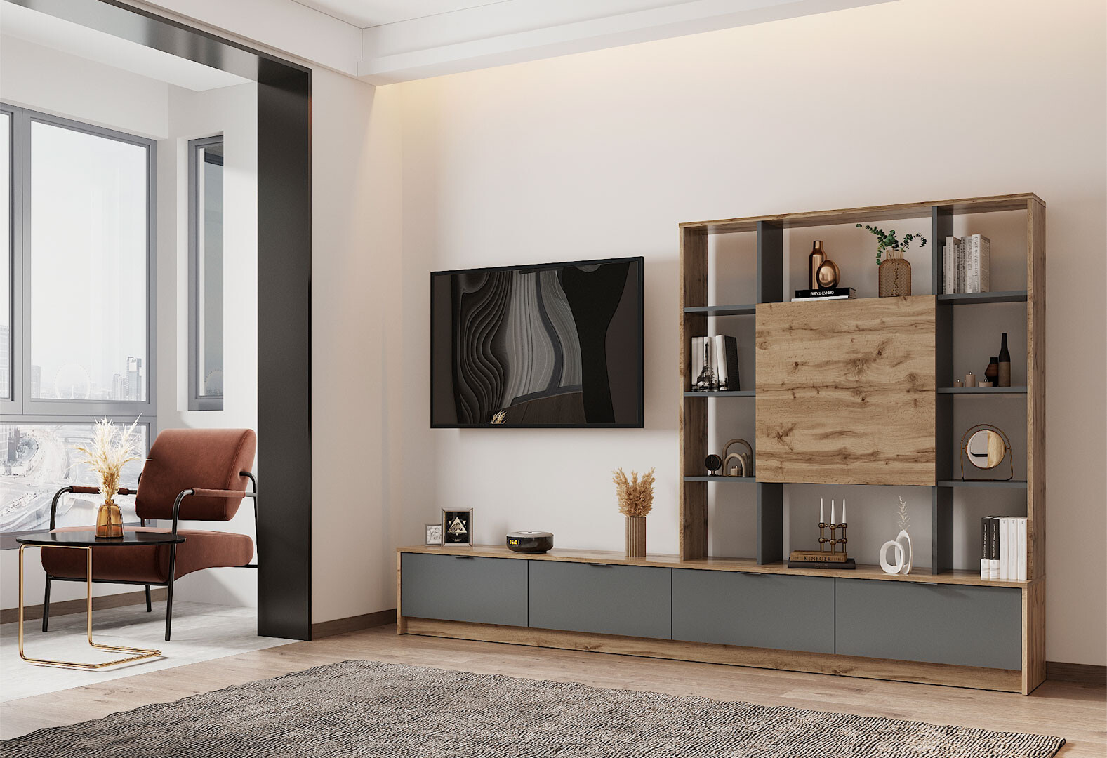 Стінка Doros Капри 2 240 см Дуб евок / Графіт
