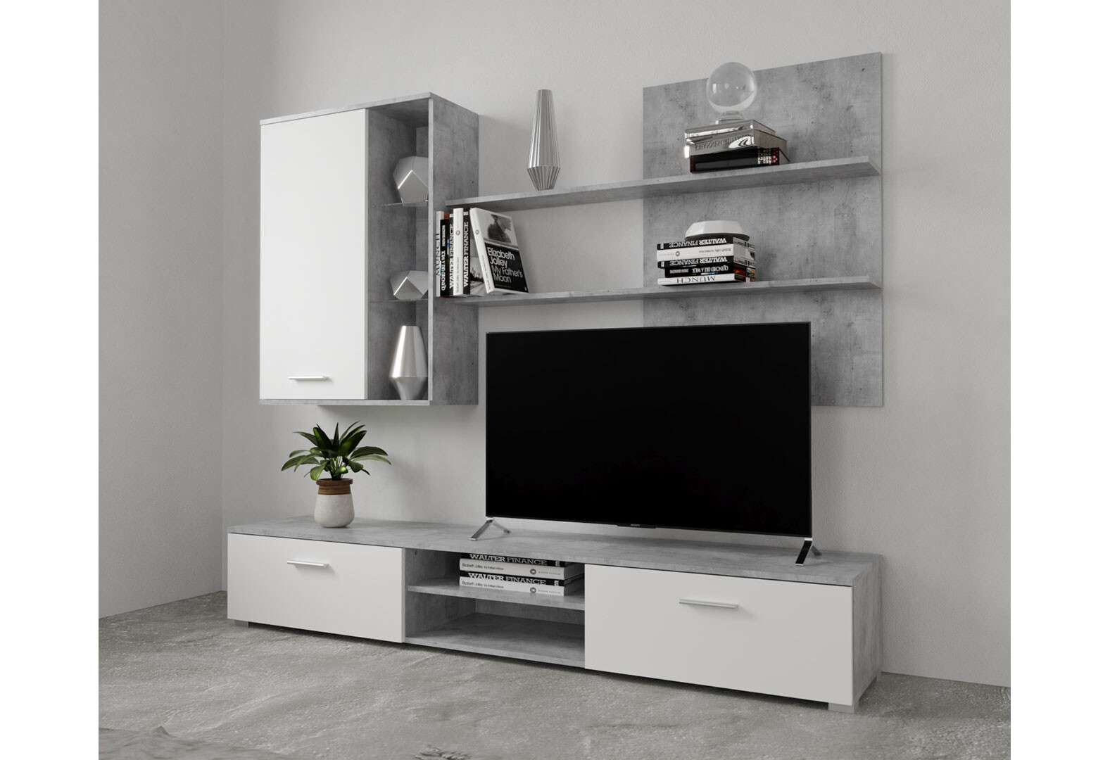 Стінка Гербор Кватро 200 см бетон ательєр / німфеа альба (полиця бетон альельєр)