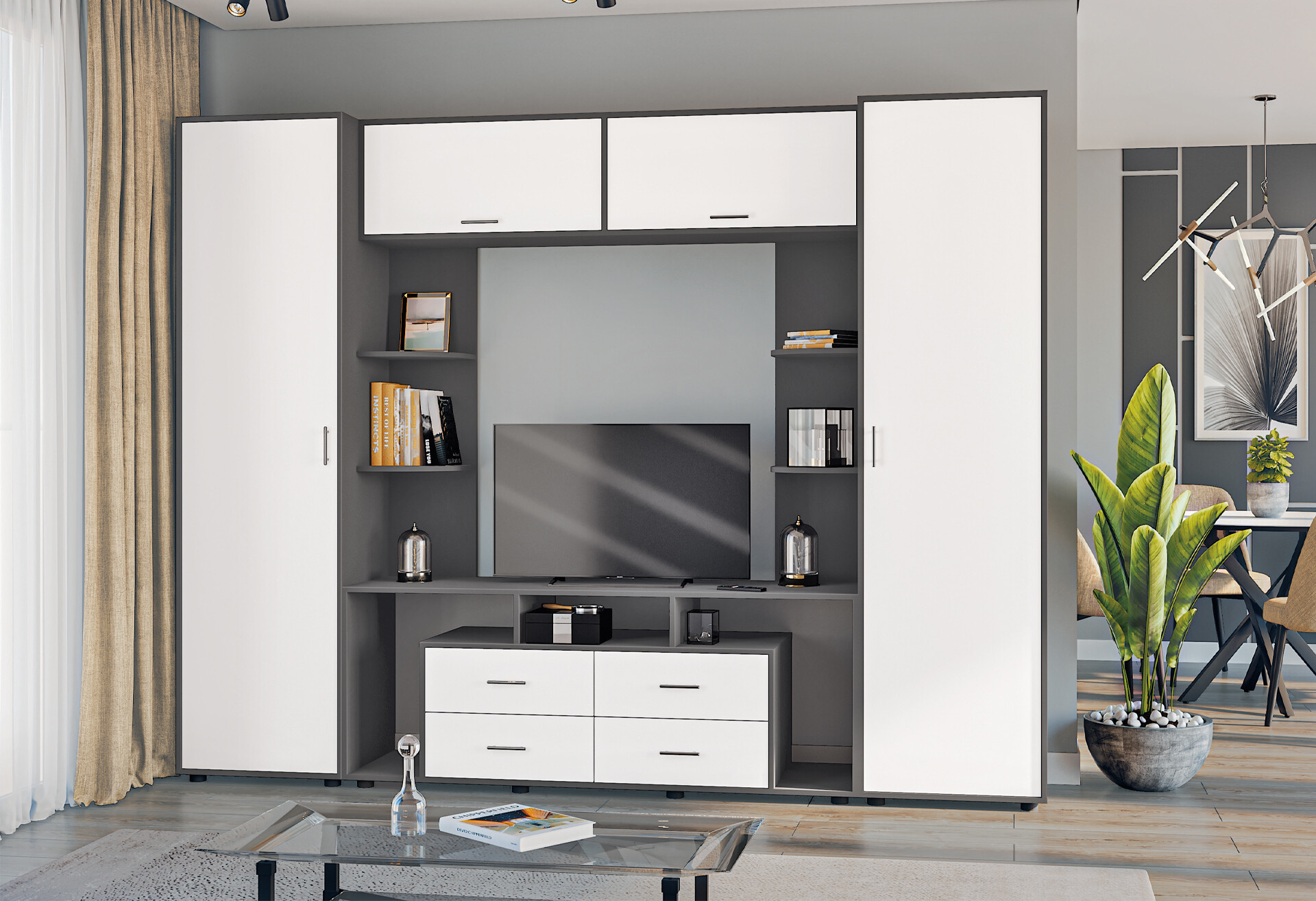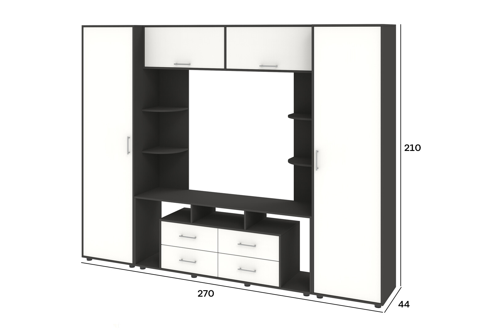 Стінка Київський стандарт Юта М 270 см антрацит / білий супермат