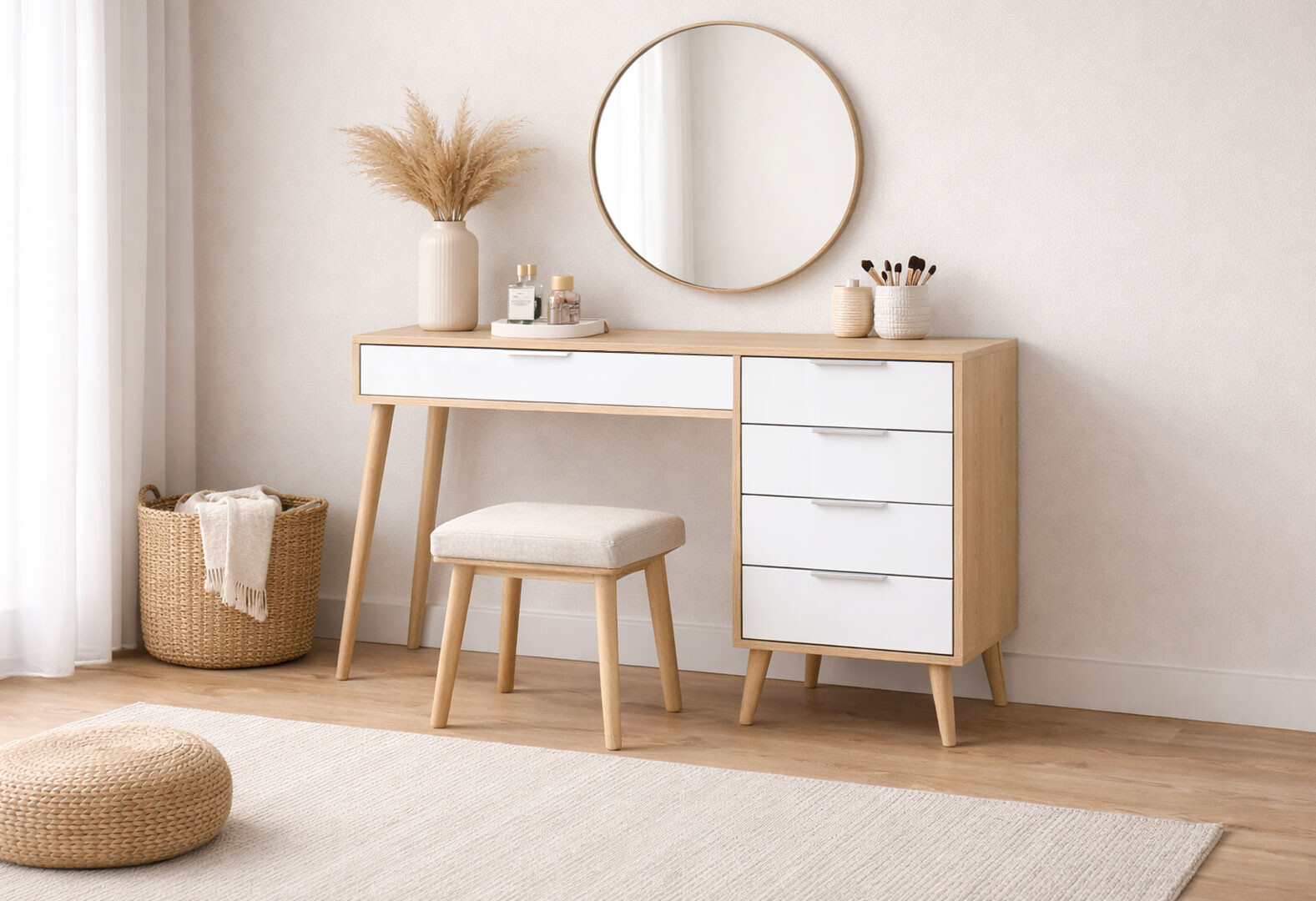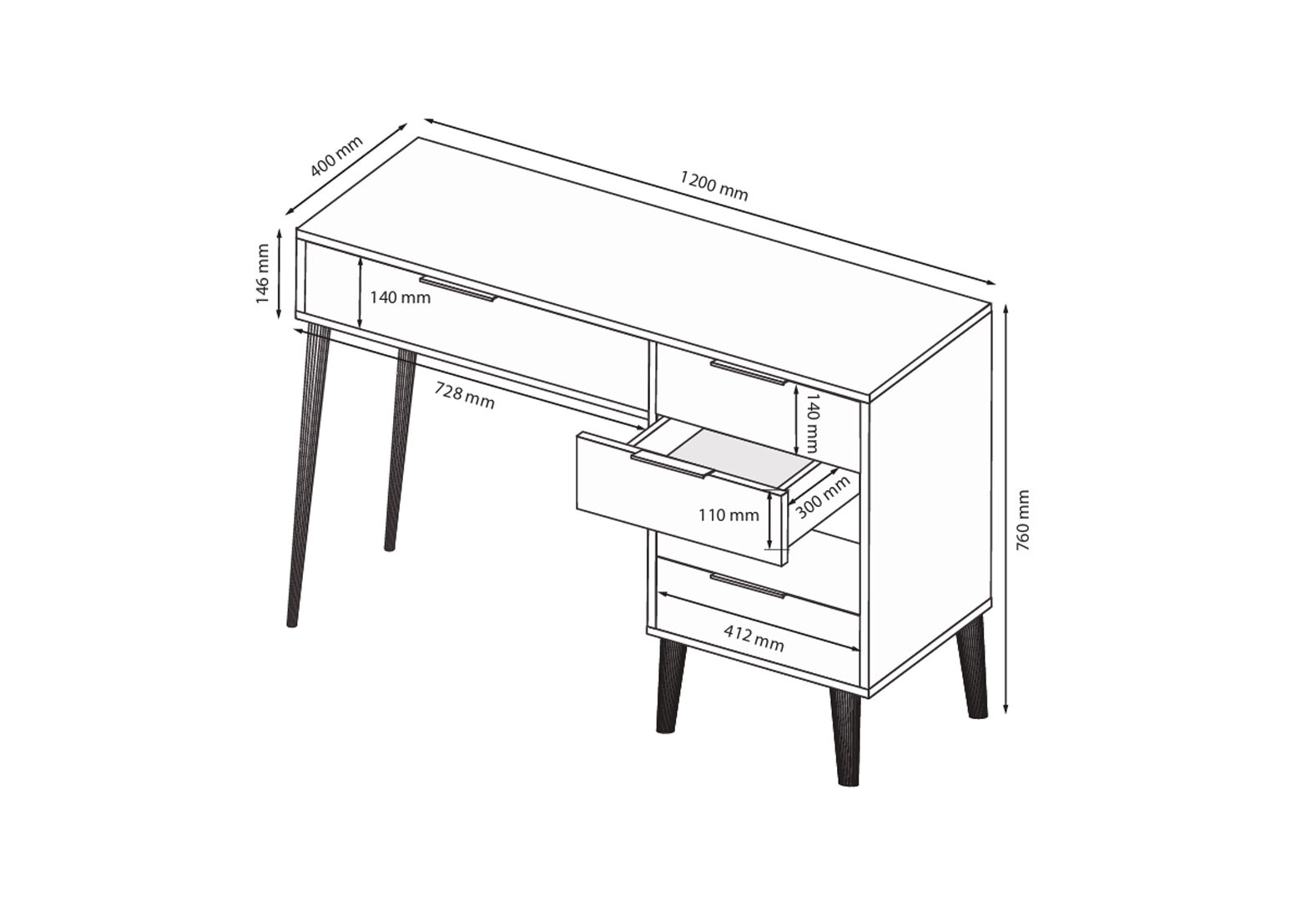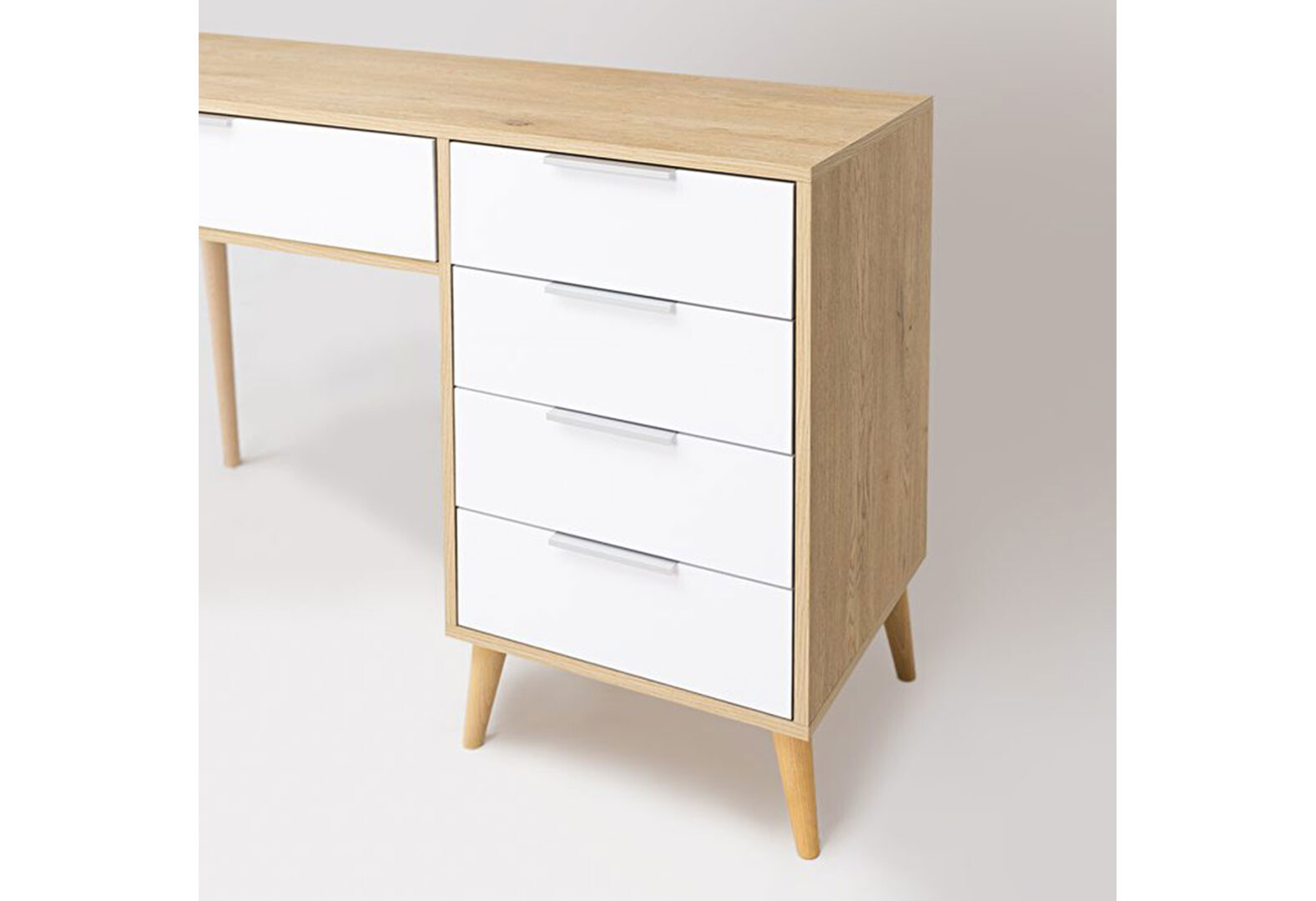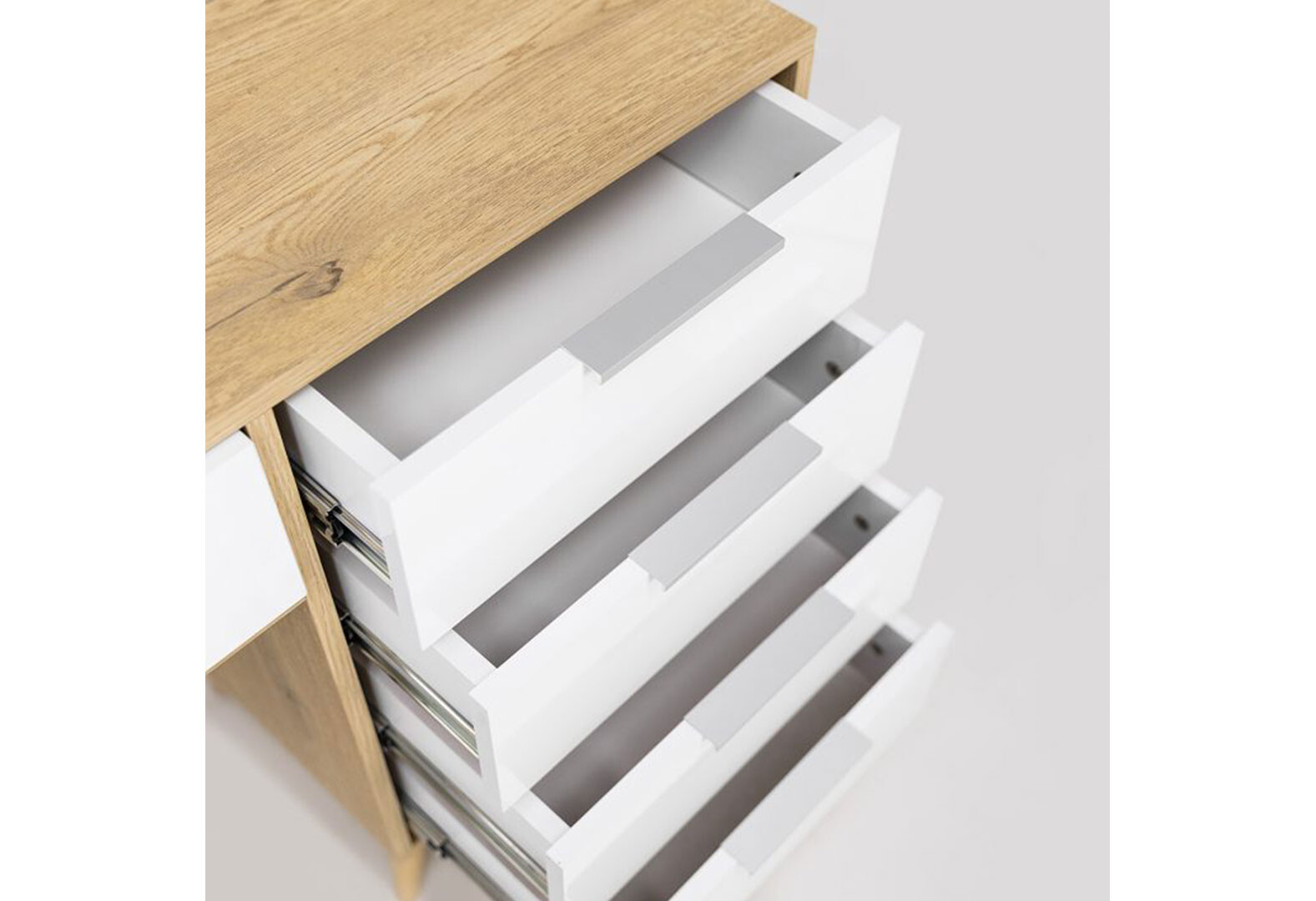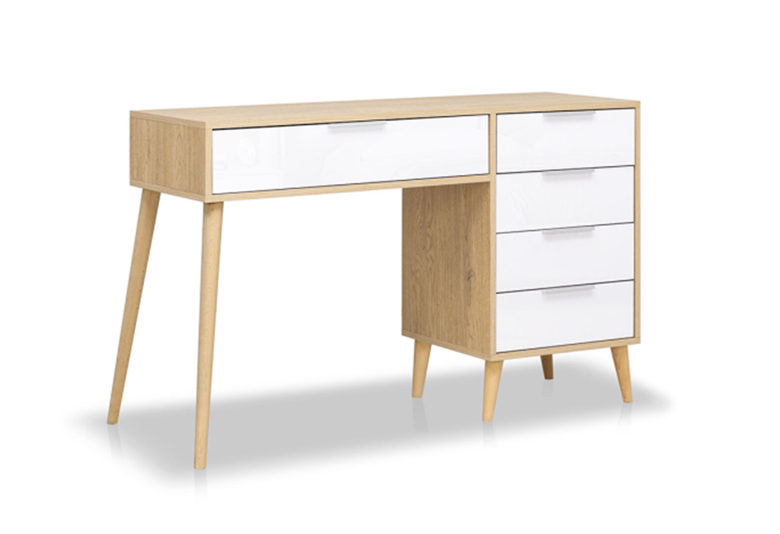 Туалетний столик MiroMark Олівія з 5 шухлядами 120 см, глянець білий / дуб кремона