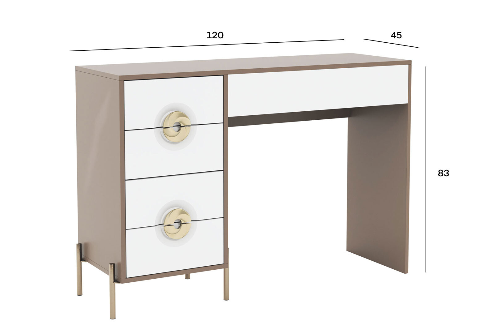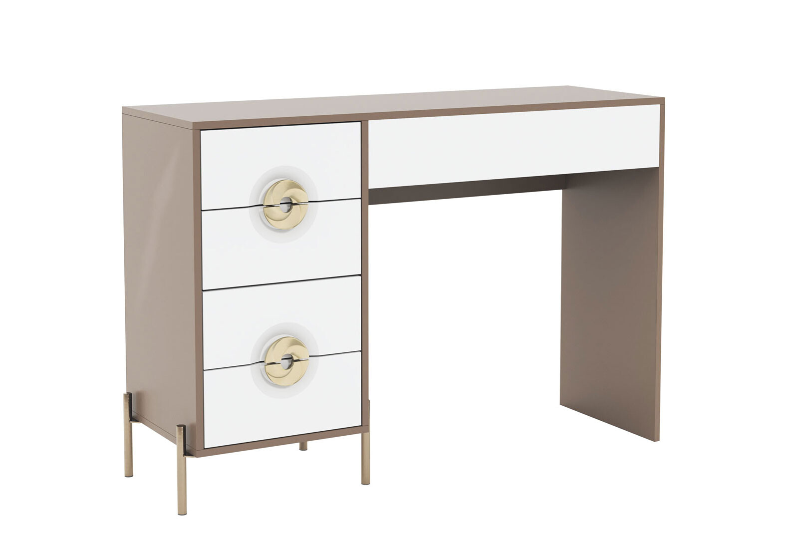 Туалетний столик Світ Меблів Фуріоза 120 см, Глиняний сірий, лак / Білий шовк