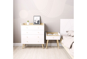Тумба 2 Art In Head Асгард / Asgard з 2 шухлядами – це ідеальне рішення для вашого інтер'єру, яке поєднує в собі сучасний скандинавський стиль та функціональність. Її компактні розміри (ширина 50 см, висота 55 см, глибина 40 см) дозволяють розмістити тумбу навіть у невеликих приміщеннях, не займаючи багато місця. Виготовлена з ламінованої ДСП, ця тумба забезпечує високу міцність та довговічність, а елегантне поєднання білого діаманту та дуба крафт золотого надає їй стильного вигляду, що легко впишеться в будь-який інтер'єр.