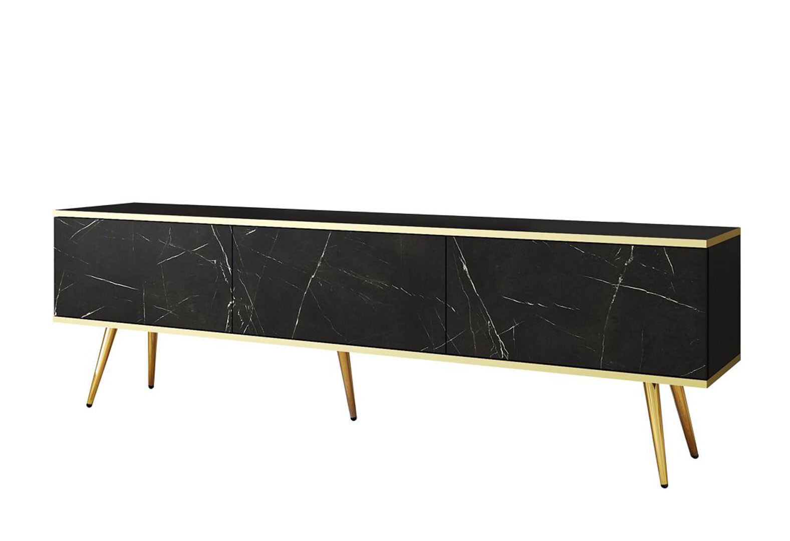 Тумба під ТВ Perfect Home Оро / Oro з 3 дверками 175 см, чорний мрамор, золоті ніжки