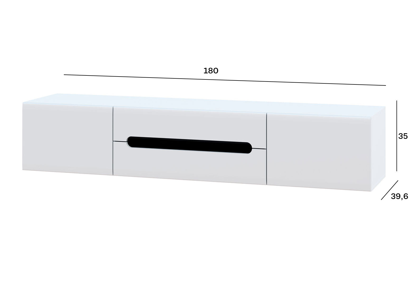 Тумба під ТВ Світ Меблів Бянко навісна з 2 дверцятами та шухлядами 180 см, Біла з чорною вставкою