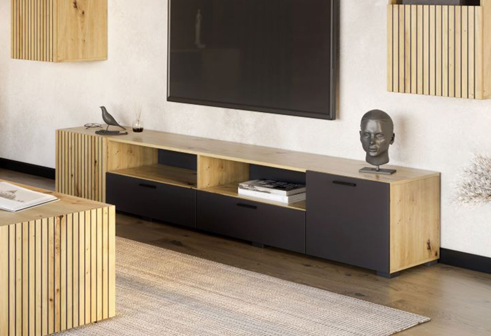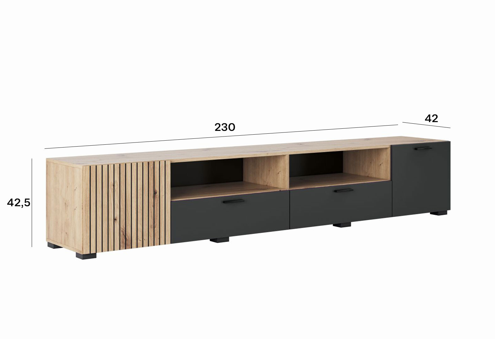 Тумба під ТВ Світ Меблів Зара 230 см з полицями та шухлядами, дуб артизан / антрацит