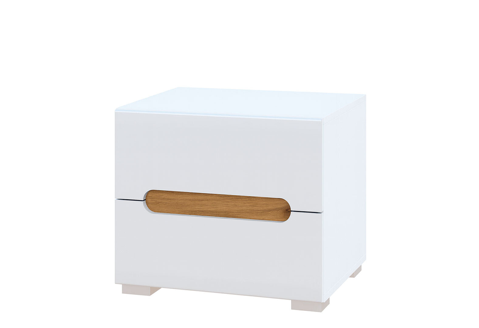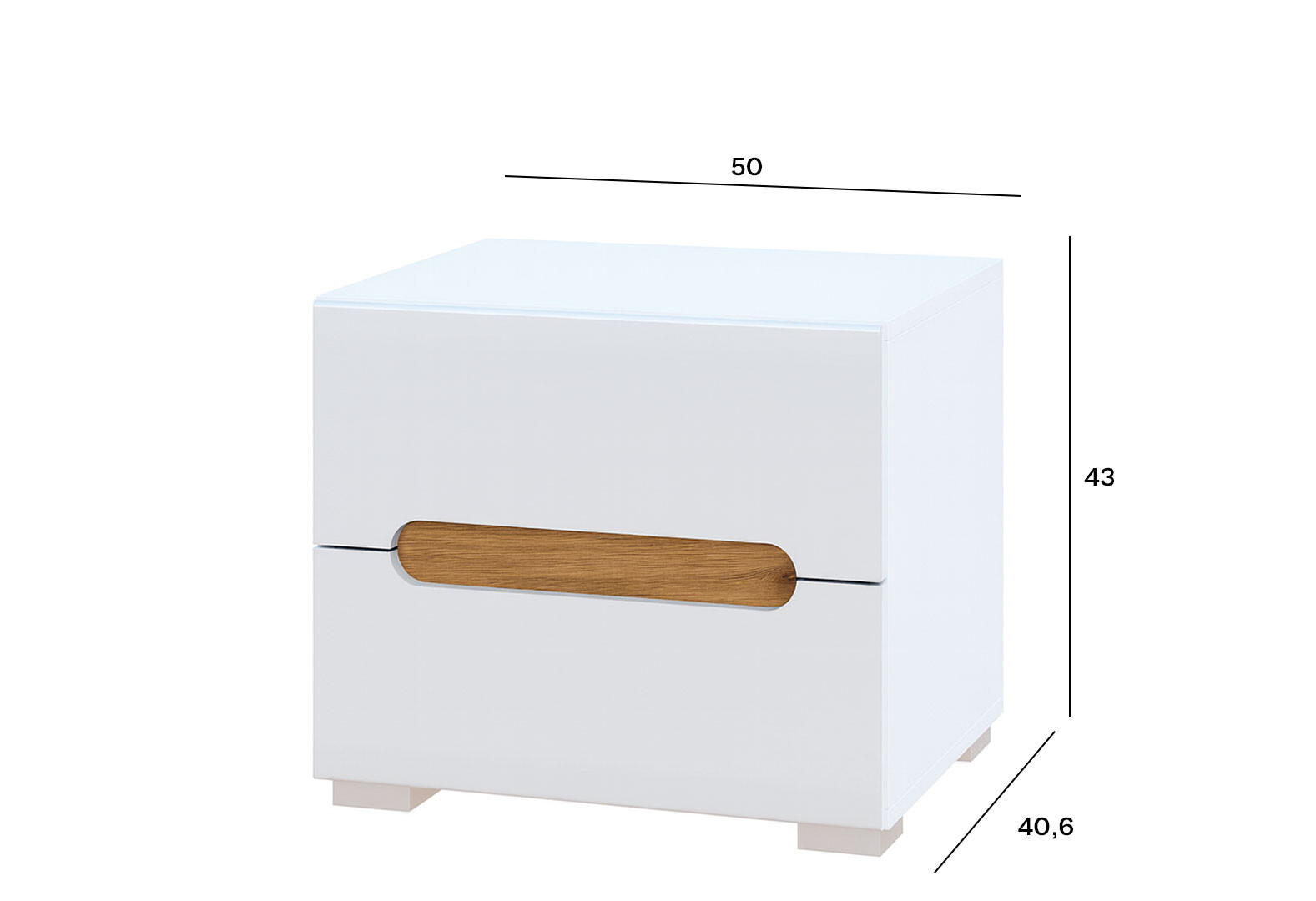 - Тумба приліжкова Світ Меблів Бянко з 2 шухлядами 50 см Біла з вставкою дуб аппалачі