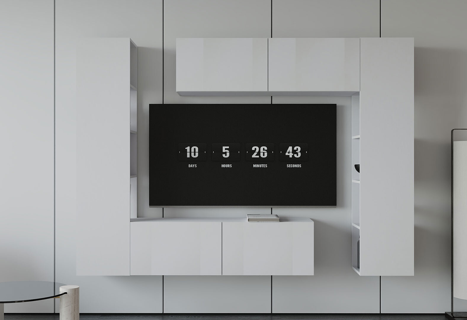 Зображення 3 - Вітальня Viant ВТ-1 з тумбою і пеналом з полицями 220 см, біла