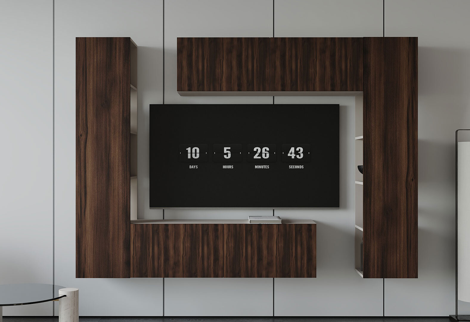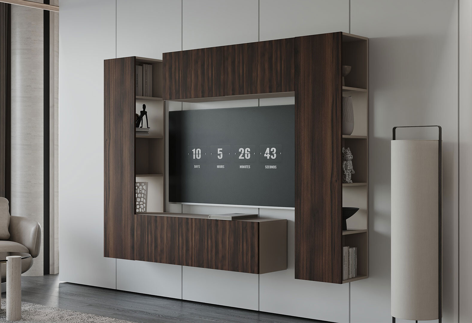 Вітальня Viant ВТ-1 з тумбою і пеналом з полицями 220 см, кашемір / дуб рістретто