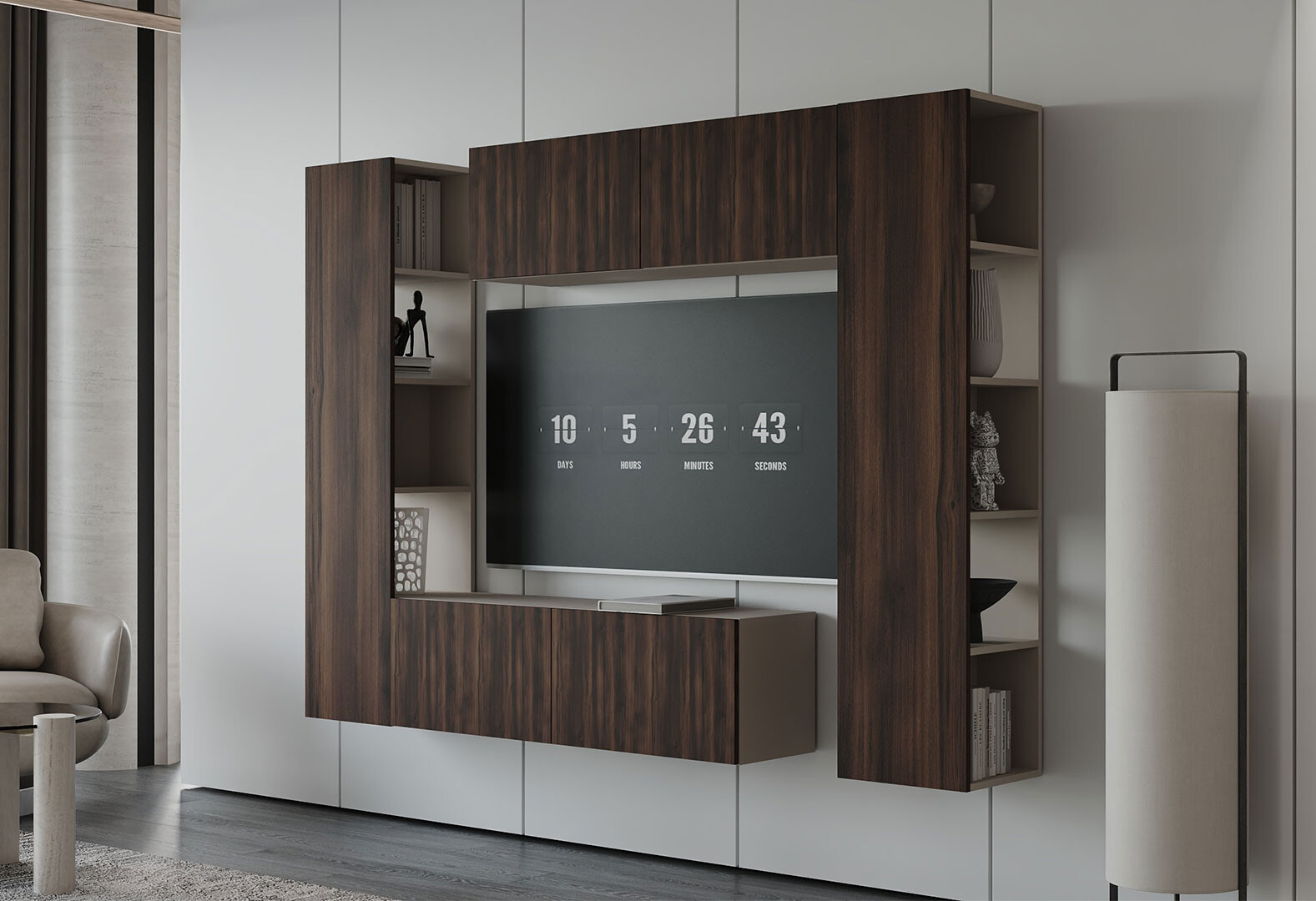 Вітальня Viant ВТ-1 з тумбою і пеналом з полицями 220 см, рістретто