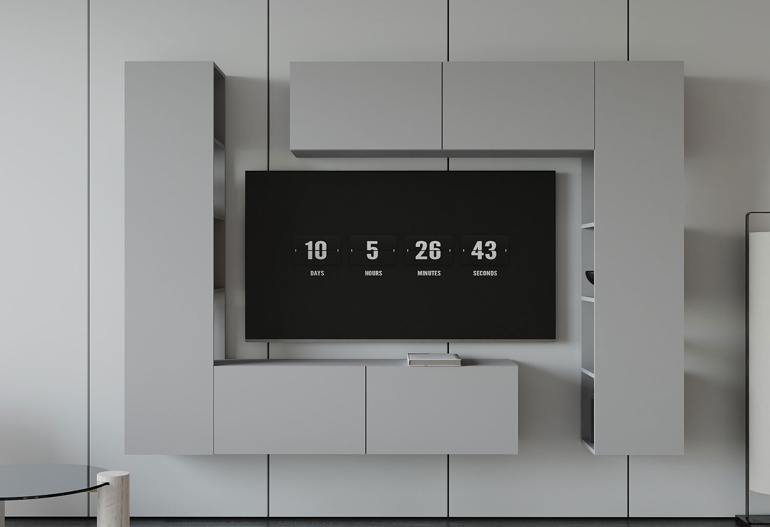 Вітальня Viant ВТ-1 з тумбою і пеналом з полицями 220 см, сіра