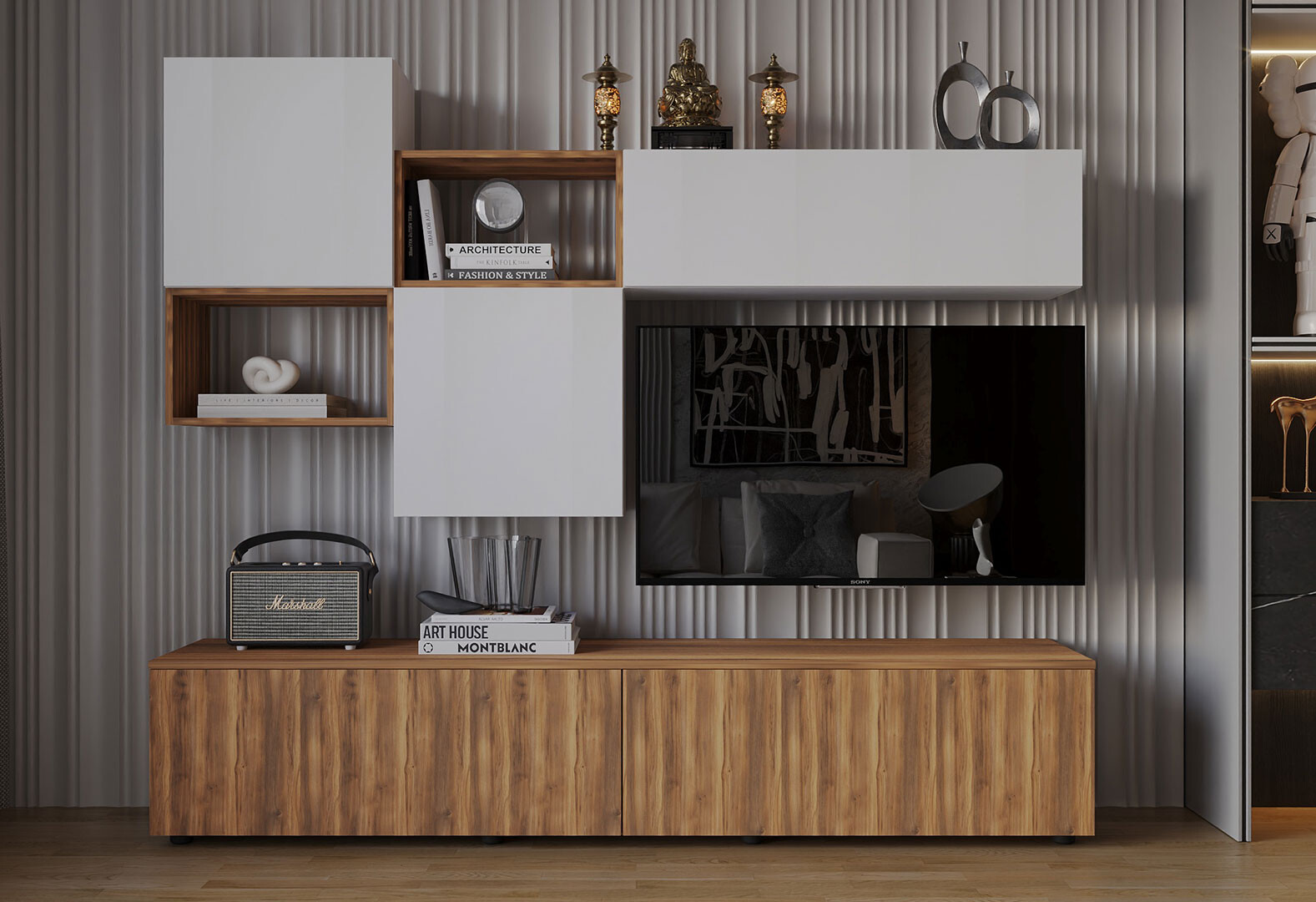 Вітальня Viant ВТ-8 з навісними полицями 180 см, білий / бурштин