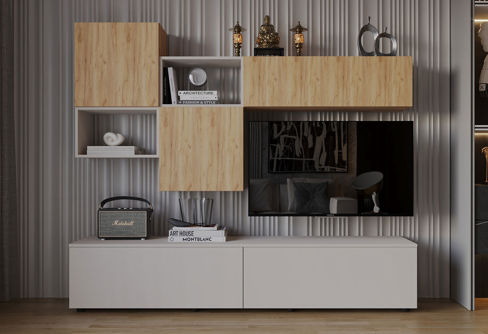 Вітальня Viant ВТ-8 з навісними полицями 200 см, дуб тахо / кашемір