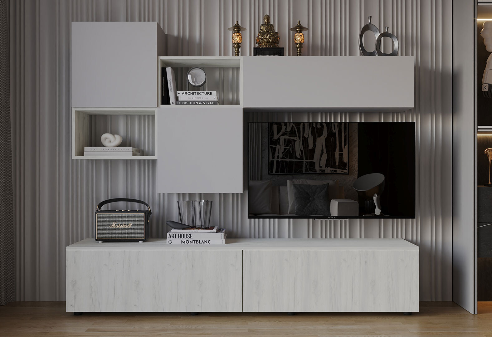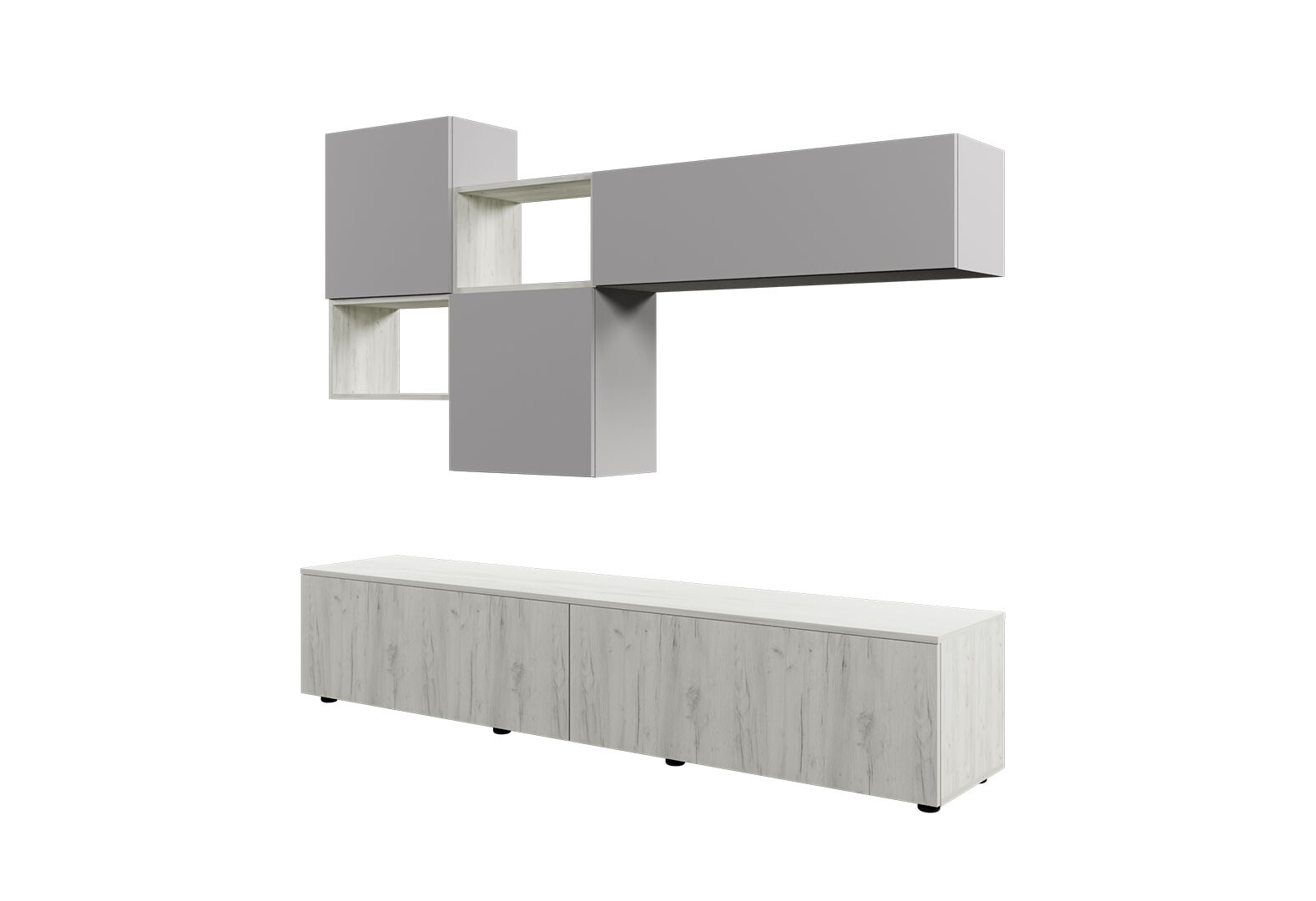 Вітальня Viant ВТ-9 з навісними полицями 180 см, сірий / дуб крафт білий