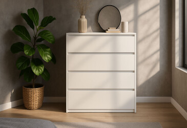 - в наявності, Moreli, ламінована ДСП, ламінована ДСП, телескопічні напрямні повного висуву, мінімалізм, білий, з 4 шухлядами.