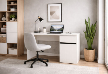 - Moreli, ламінована ДСП, ламінована ДСП, навісний, мінімалізм, висувний ящик, білий.