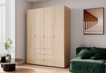- Doros, ламінована ДСП, ламінована ДСП, роликові напрямні, штанга, полиці та шухляди, мінімалізм, дуб сонома, 4D.