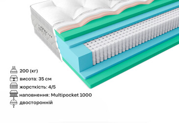 - стьобаний стрейч, 150х190, ЕММ, 1000 шт, Tocco di seta unica, Compo Elastico, Multipocket 1000, 200, IV-V Жорсткий, EMM - Belsonno Oro, На незалежній пружині Pocket, без вакуумної скрутки.