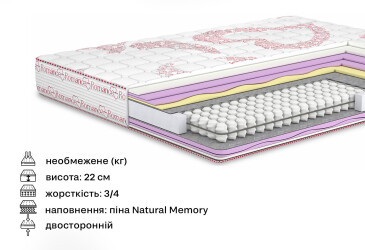 - супер-ціна, 120х190, 260 шт, кокос, memoryfoam, Pillowy Top Foam, Organic Protection, Ergonomic Spring System, Layer Bliss, Comfort Layer, Прошивка чохла "Зима/Літо", необмежена, IV-V Жорсткий, II-III Середній, два рівні, Matroluxe - Romance, На незалежній пружині Pocket, без вакуумної скрутки.