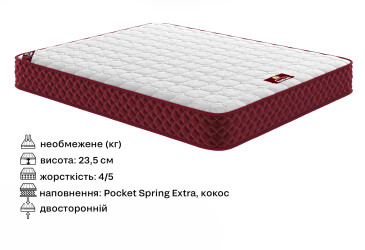 - жакард, 120х200, Come-for, спанбонд, синтепон, посилений пружинний блок Pocket Spring Extra, латексований кокос, необмежена, IV-V Жорсткий, Come-for — RedPeak, На незалежній пружині Pocket, без вакуумної скрутки.