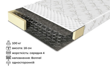 - 180х200, ЕММ, 120 шт, Пружини Bonnel, термоповсть, ППУ, 100, IV-V Жорсткий, EMM - Еко, На класичній пружині Bonnel, без вакуумної скрутки.