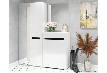 - в наявності, Світ Меблів, глянцева МДФ, скло, ДСП, петлі з дотягувачами, мікроліфт і полиці, модерн, білий (вставка чорна), 2D.