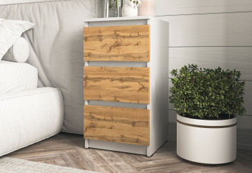 - Moreli, ламінована ДСП, ламінована ДСП, телескопічні напрямні повного висуву, модерн, білий / дуб аппалачі, з 3 шухлядами.
