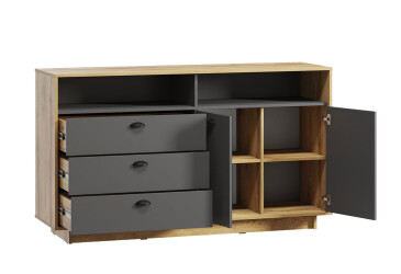 - супер-ціна, Moreli, ламінована ДСП, ламінована ДСП, телескопічні напрямні повного висуву, модерн, антрацит / дуб сонома, з 3 шухлядами.
