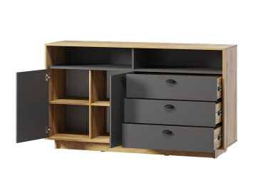 - ліва, Moreli, ламінована ДСП, ламінована ДСП, телескопічні напрямні повного висуву, модерн, дуб аппалачі / антрацит, з 3 шухлядами, з дверцятами.