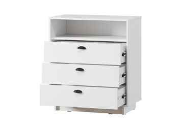 - Moreli, ламінована ДСП, ламінована ДСП, телескопічні напрямні повного висуву, модерн, білий, з 3 шухлядами.