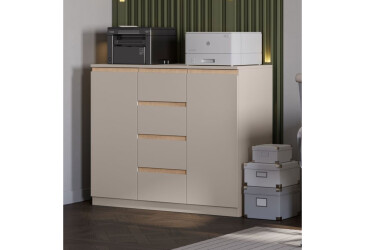 - дерев'яні, Perfect Home, ламінована ДСП, ламінована ДСП, телескопічні напрямні повного висуву, сканді, беж пісочний / ялиця сканді, з 3 шухлядами, з дверцятами.