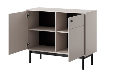 - металеві, Perfect Home, ламінована ДСП, ламінована ДСП, телескопічні напрямні повного висуву, сучасний, беж / чорний, з 2 шухлядами, з дверцятами.