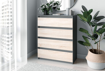 - супер-ціна, Moreli, ламінована ДСП, ламінована ДСП, телескопічні напрямні повного висуву, модерн, антрацит / дуб сонома, з 4 шухлядами.