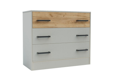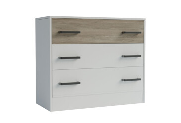 - Moreli, ламінована ДСП, ламінована ДСП, телескопічні напрямні повного висуву, модерн, білий / дуб сонома, з 3 шухлядами.