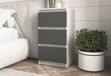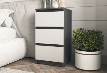 - Moreli, ламінована ДСП, ламінована ДСП, телескопічні напрямні повного висуву, мінімалізм, антрацит / білий, з 3 шухлядами.