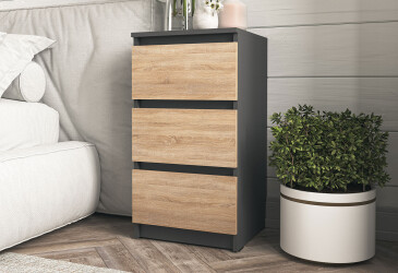 - Moreli, ламінована ДСП, ламінована ДСП, телескопічні напрямні повного висуву, модерн, антрацит / дуб сонома, з 3 шухлядами.