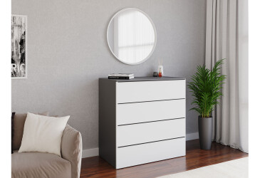- Moreli, ламінована ДСП, ламінована ДСП, телескопічні напрямні повного висуву, мінімалізм, білий / антрацит, з 4 шухлядами.