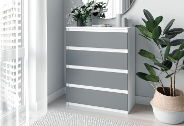 - супер-ціна, Moreli, ламінована ДСП, ламінована ДСП, телескопічні напрямні повного висуву, сучасний, білий / антрацит, з 4 шухлядами.