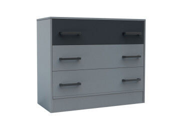 - Garant, ламінована ДСП, ламінована ДСП, телескопічні напрямні повного висуву, мінімалізм, шиншила грей / сірий графіт, з 3 шухлядами.