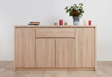 - в наявності, VMV holding, ламінована ДСП, ламінована ДСП, телескопічні напрямні повного висуву, модерн, дуб сонома / білий, з 4 шухлядами, з дверцятами.