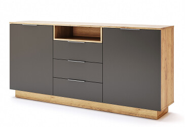- MiroMark, ламінована ДСП, ламінована ДСП, телескопічні напрямні повного висуву, модерн, лава / дуб крафт, з 3 шухлядами, з дверцятами.