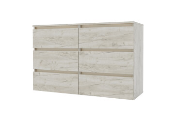 - MiroMark, глянцева ДСП, ламінована ДСП, телескопічні напрямні повного висуву, модерн, дуб крафт / білий, з 6 шухлядами.