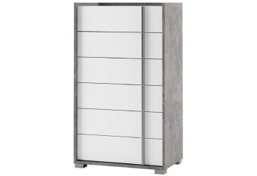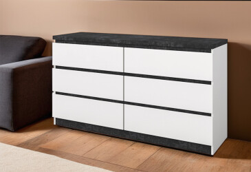 - Світ Меблів, ДСП, ДСП, телескопічні напрямні повного висуву, сучасний, білий / бетон темний, з 6 шухлядами.